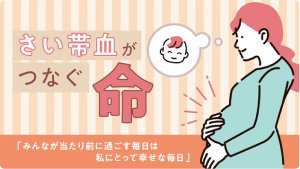 お母さんと赤ちゃんを結ぶへその緒を「さい帯」と言い、さい帯と胎盤の中に含まれる血液を「さい帯血」と言います。さい帯血は造血幹細胞(ぞうけつかんさいぼう)をたくさん含んでいるので、正常に血液を造れなくなった患者さんに移植することで、血液を造る力を回復させることが期待できます。これを「さい帯血移植」といいます。
